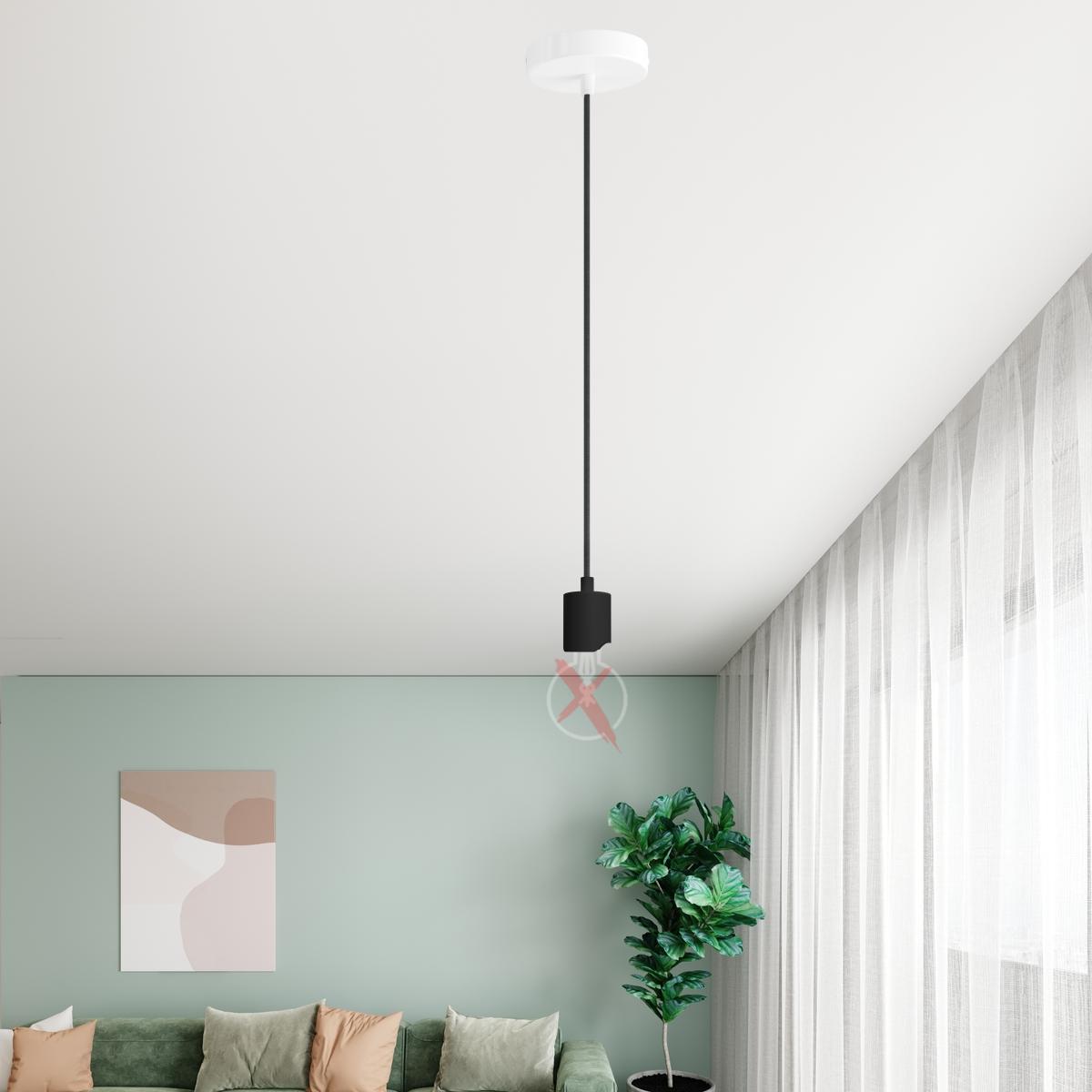 Portalampada : 1X [PLS14DSPN] Kit portalampada esse14 per lampade a sospensione con attacco S14d - Finitura: Nero